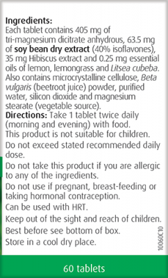 Nutritional supplement containing soya, isoflavones, magnesium, hibiscus extract and vervain essential oil