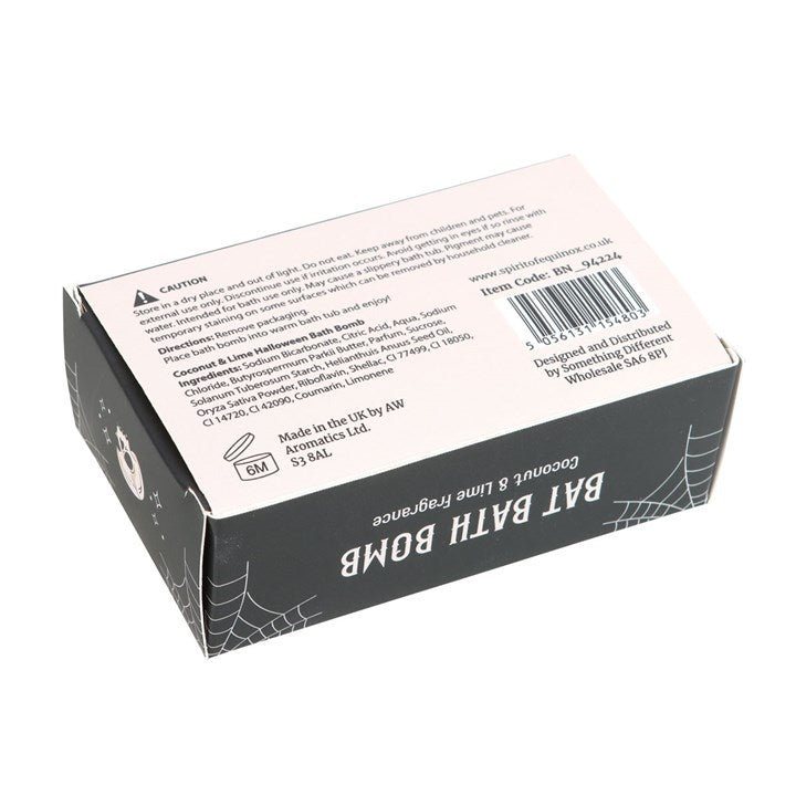 Unwind after a long day of haunting with this spooky bath bomb. Shaped like a bat, this fun fizzer is sure to make your next bath deadly relaxing. Coconut & Lime fragrance. Store in a cool, dry place. Part of our Bats and Bones collection of Halloween decorations and home accessories.
