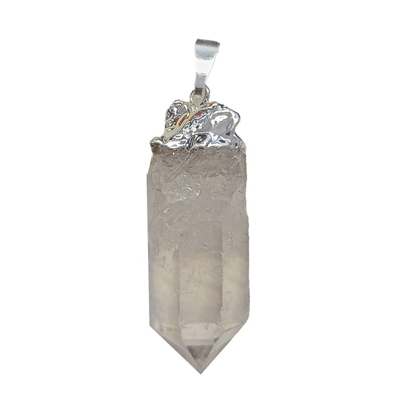 Clear Quartz Point Pendant Silver Plated Cap Brazil