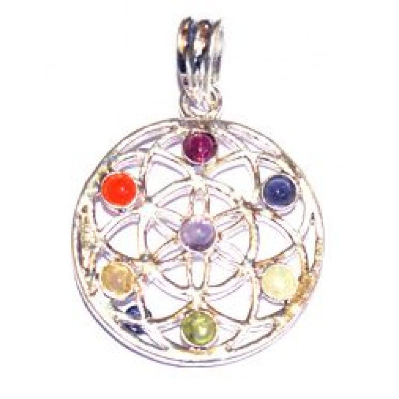 Chakra Flower of Life Silver Plated Pendant