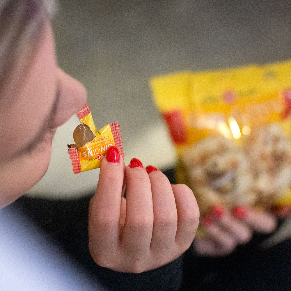 Natural, stimulating and delicious. Given Ginger’s queasy-quelling properties, Gin Gins® Hard Candy are great to fight off nausea while flying, boating or going on a bumpy road trip. Take Gin Gins® Double Strength Hard Ginger Candy with you wherever you go and enjoy as a spicy-sweet pick-me-up. These double strength hard ginger candies are made with all natural ingredients and are a popular throat lozenge to both warm and soothe.