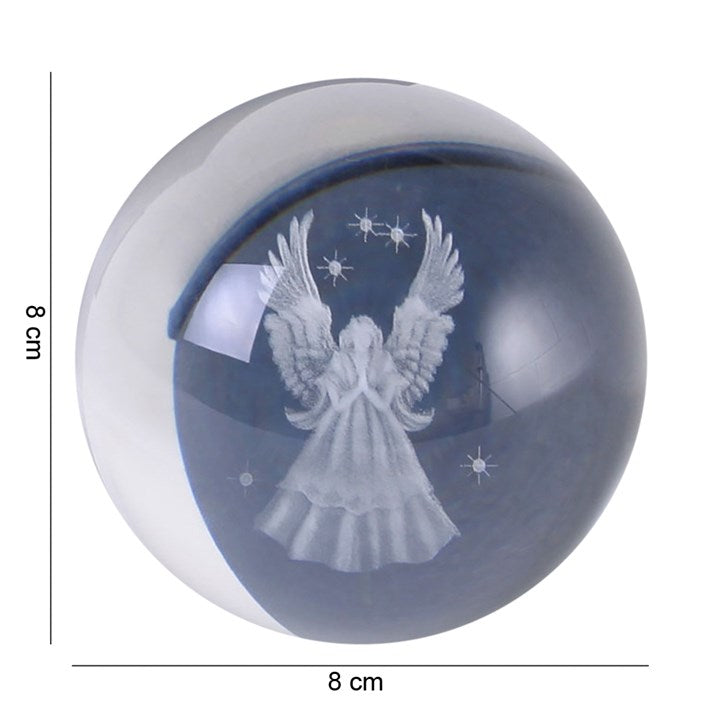 Glass sphere featuring a Guardian Angel etched inside