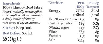 THIS DELICIOUS LOW SUGAR SYRUP IS EXTRACTED FROM FRESH CHICORY ROOTS AND BRINGS PLANT-BASED SWEETNESS TO YOUR FAVOURITE FOODS & DRINKS, WITHOUT CAUSING ANY SPIKE IN BLOOD SUGARS. PLUS, ITS HIGH IN GUT HEALTHY PREBIOTIC FIBRE.