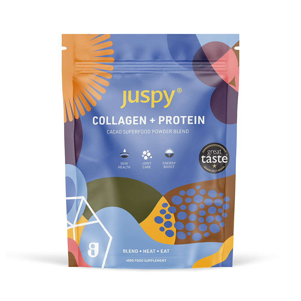 Juspy ticks so many ‘health to-dos’ e.g., natural skin care, joint and bone support. It is high in protein, a source of fibre and deeply satisfying to the taste buds. It is so versatile that it can be used as a shake or smoothie, as hot chocolate or with coffee, or in any healthy baking recipe.
