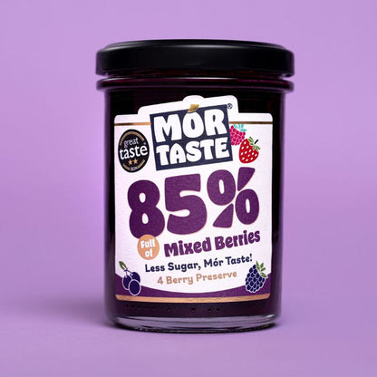 The Mór Taste 4 Berry Jam has a much higher content of real fruit than other jams. That’s why its consistency is softer, making it a perfect addition to bread, toast and scones - but also much more: Spoon this luscious fruity jam on pancakes, yoghurt or porridge - or eat it straight from the jar.